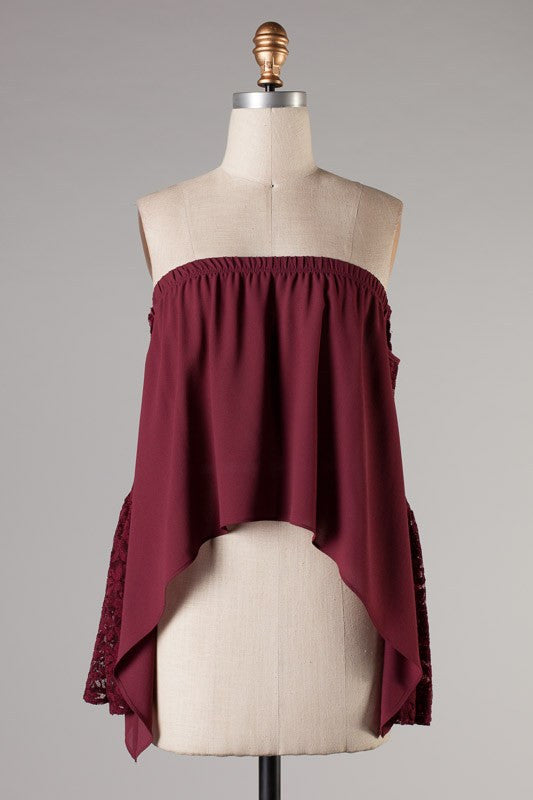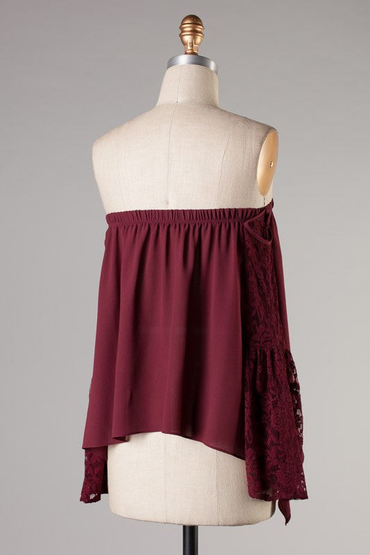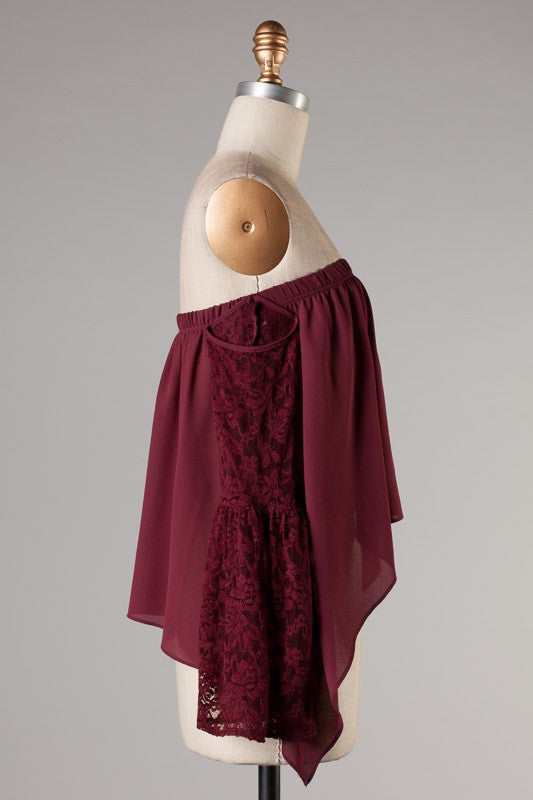 DOLMAN LONG RUFFLE HEM SLEEVE SMOCKED WAIST DETAIL WOVEN PEPLUM TOP WITH BACK NECK BUTTON